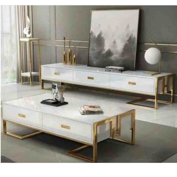 QUALITY WHITE & GOLD RECTANGULAR CENTER TABLE & TV STAND - AVAILABLE (SOFU)