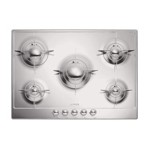 Smeg Gas Hob | P705ES 72cm Polished Stainless Steel Piano Design 5 Burner Gas Hob with Evershine - M