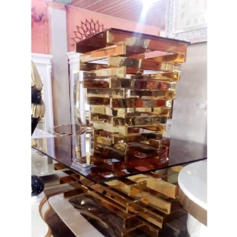 QUALITY DESIGNED SQUARE GLASS TOP & GOLDEN SQUARE BASE CENTER TABLE CHAIR - AVAILABLE (CHIN